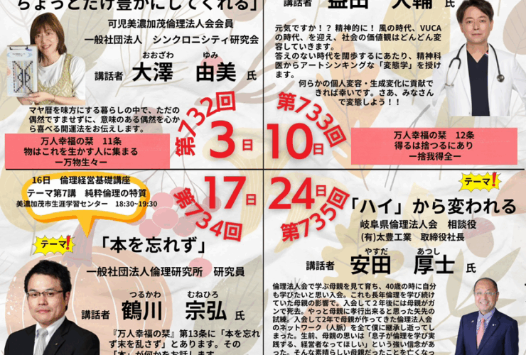 講師: 一般社団法人倫理研究所 法人局普及事業部東海・北陸方面 副方面長 鶴川宗弘氏