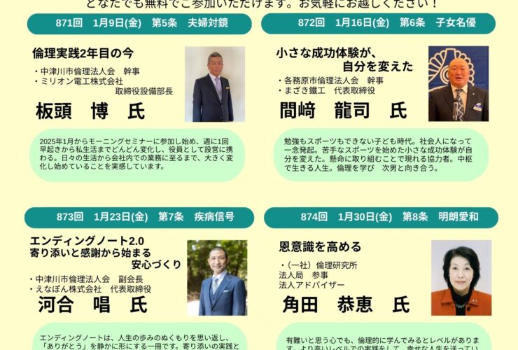 【告知】岐阜市中央倫理法人会 経営者モーニングセミナー1月予定表