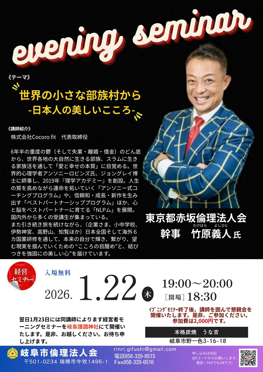 【告知】岐阜市倫理法人会 イブニングセミナー