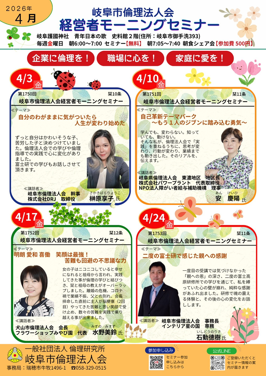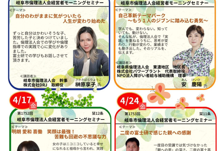 【告知】岐阜市倫理法人会 経営者モーニングセミナー4月予定表