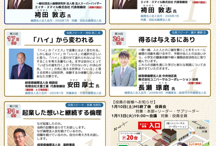 【告知】岐阜長良倫理法人会 経営者モーニングセミナー1月予定表