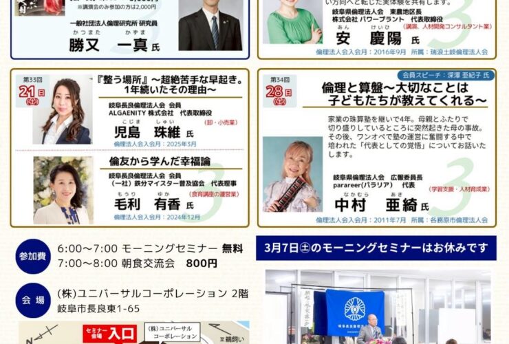 【告知】岐阜長良倫理法人会 経営者モーニングセミナー3月予定表