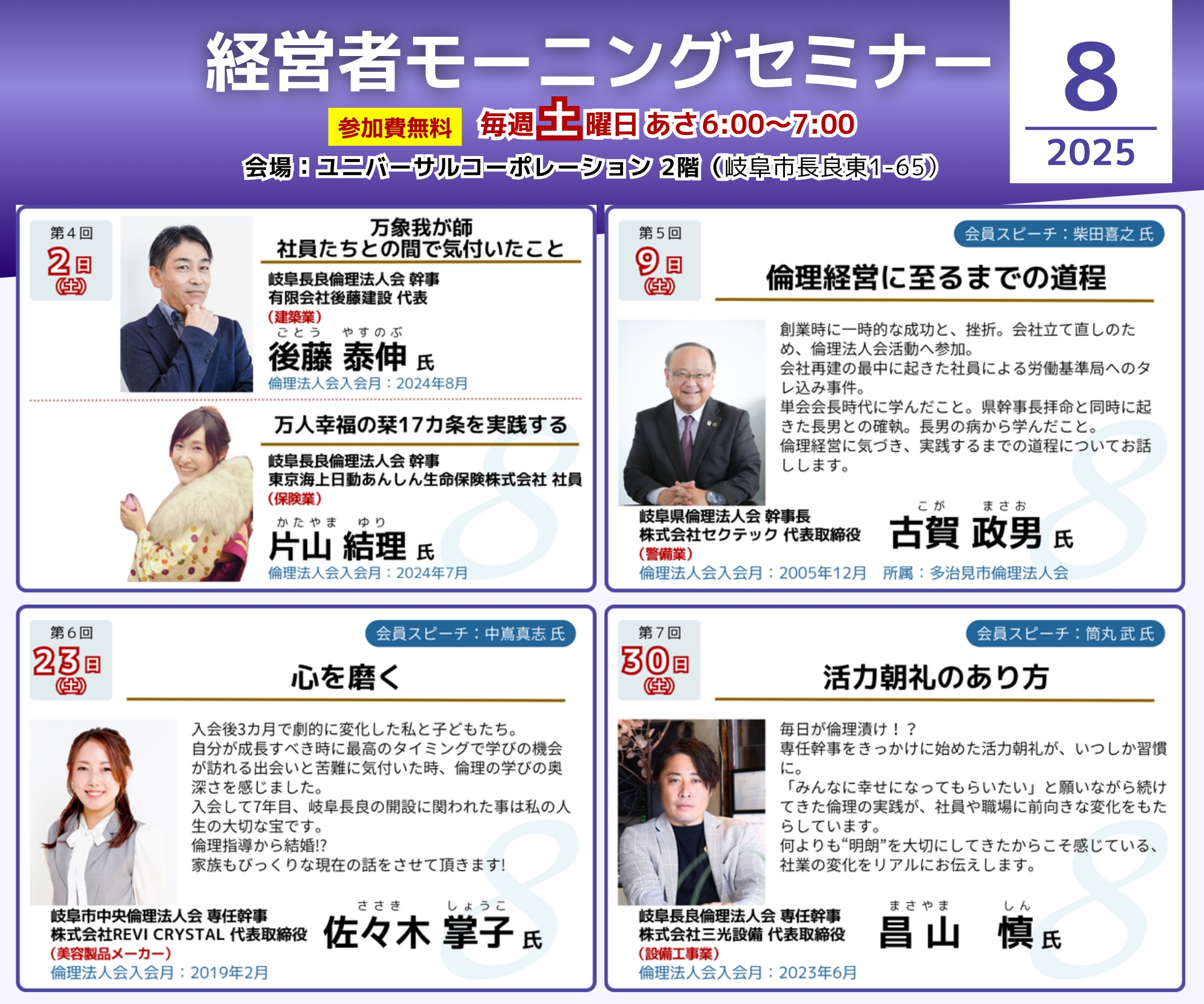 4. 【告知】岐阜長良倫理法人会 経営者モーニングセミナー8月予定表