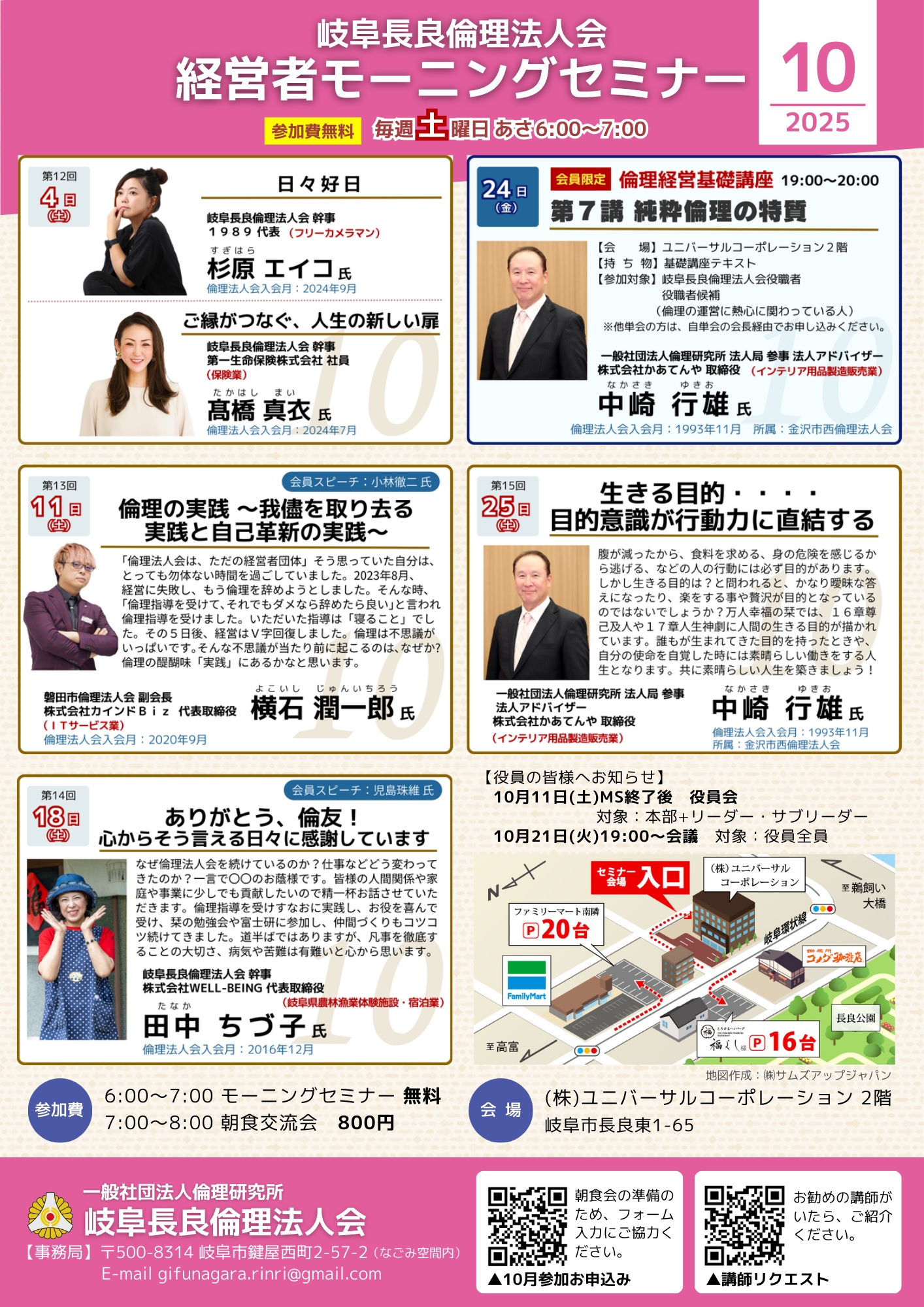 【告知】岐阜長良倫理法人会 経営者モーニングセミナー10月予定表