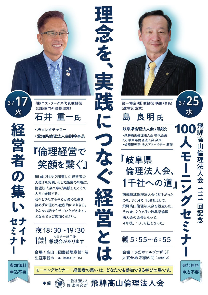 飛騨高山倫理法人会 経営者モーニングセミナー3月予定表