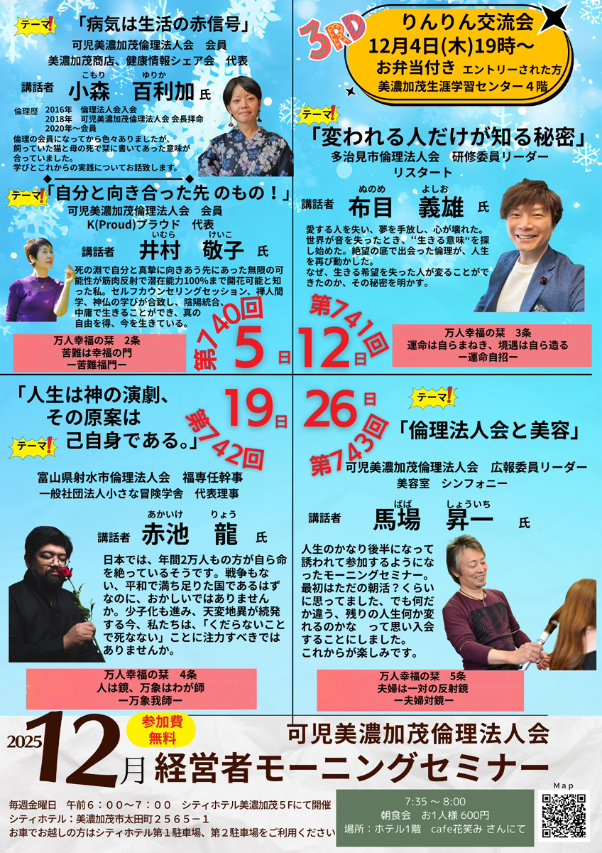 岐阜県倫理法人会は健全な経営での企業繁栄を実現するため経営者の在り方を学び、経営者同士が交流する会です