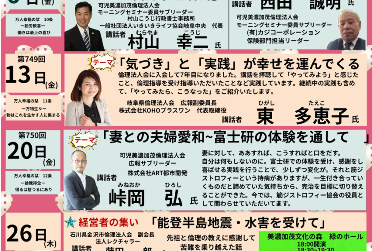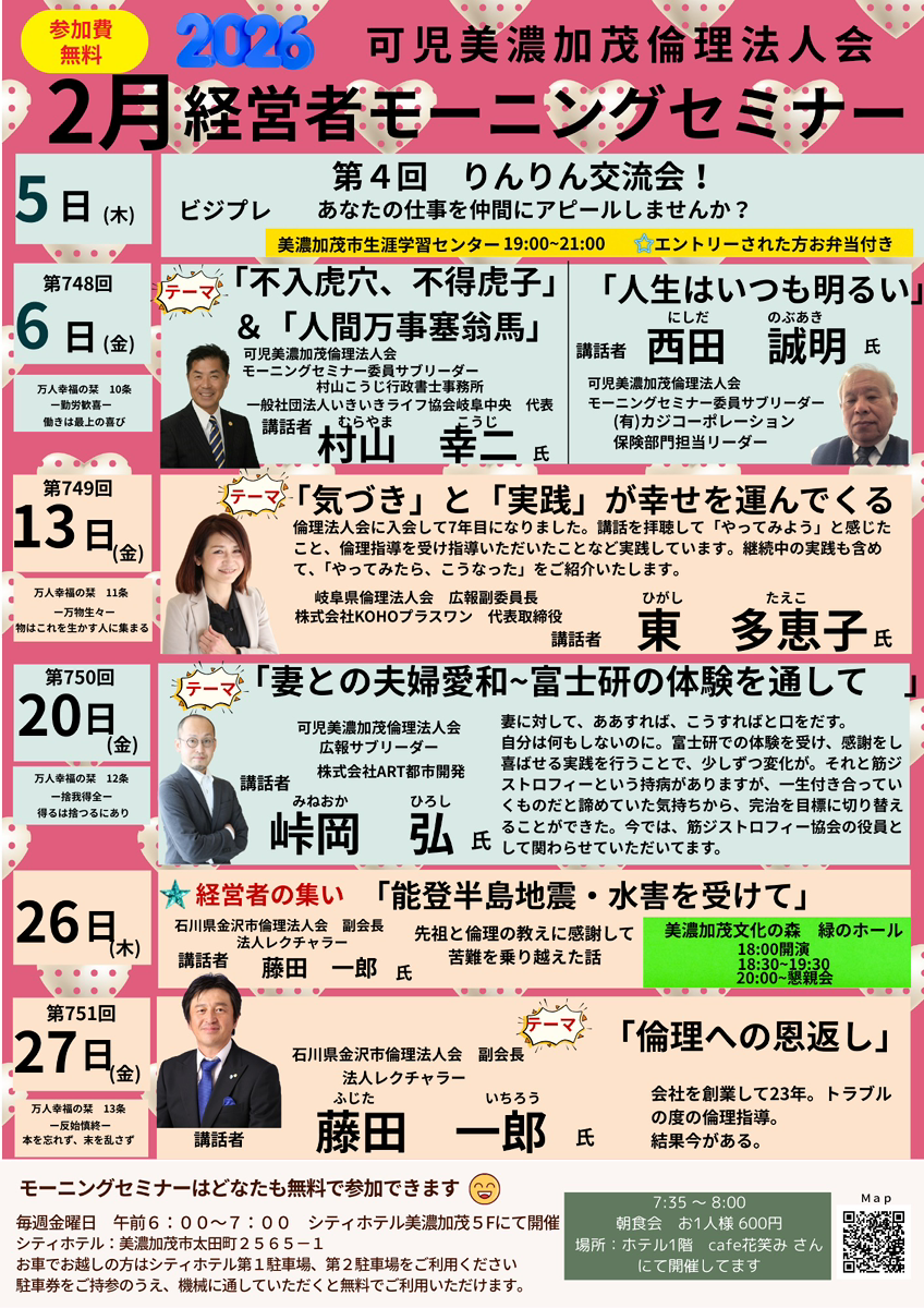 【告知】可児美濃加茂倫理法人会 経営者モーニングセミナー2月予定表