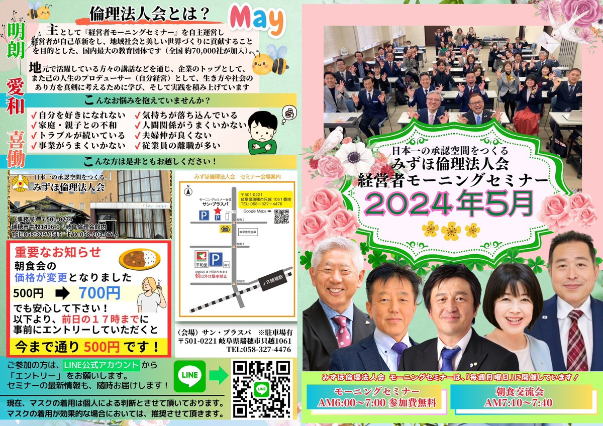 【告知】みずほ倫理法人会 経営者モーニングセミナー5月予定表