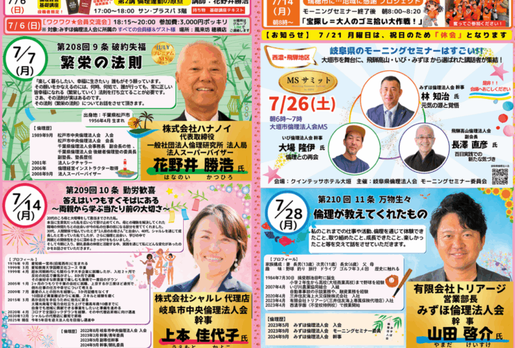 岐阜県倫理法人会は健全な経営での企業繁栄を実現するため経営者の在り方を学び、経営者同士が交流する会です