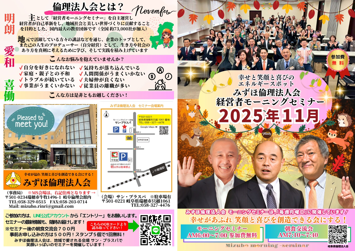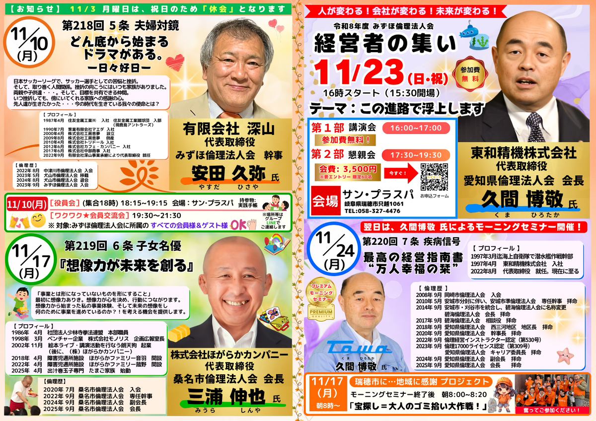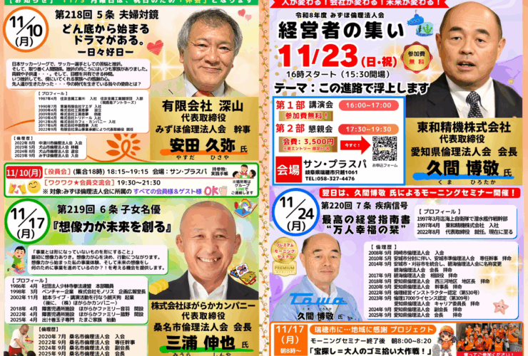 【告知】みずほ倫理法人会 経営者モーニングセミナー11月予定表