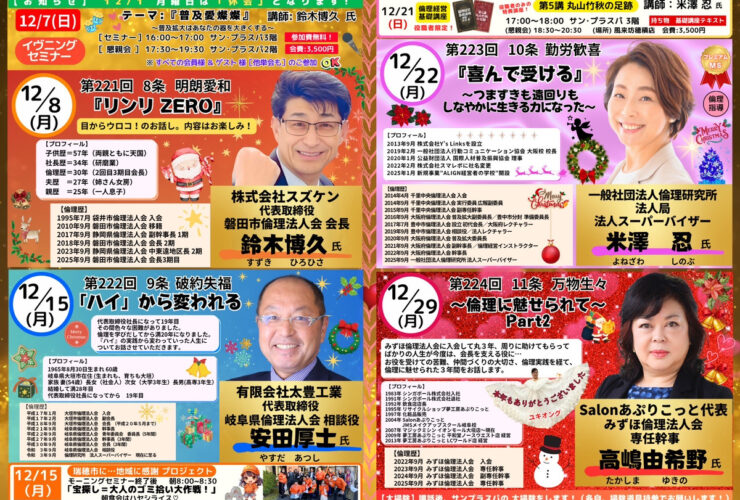 【告知】みずほ倫理法人会 経営者モーニングセミナー12月予定表