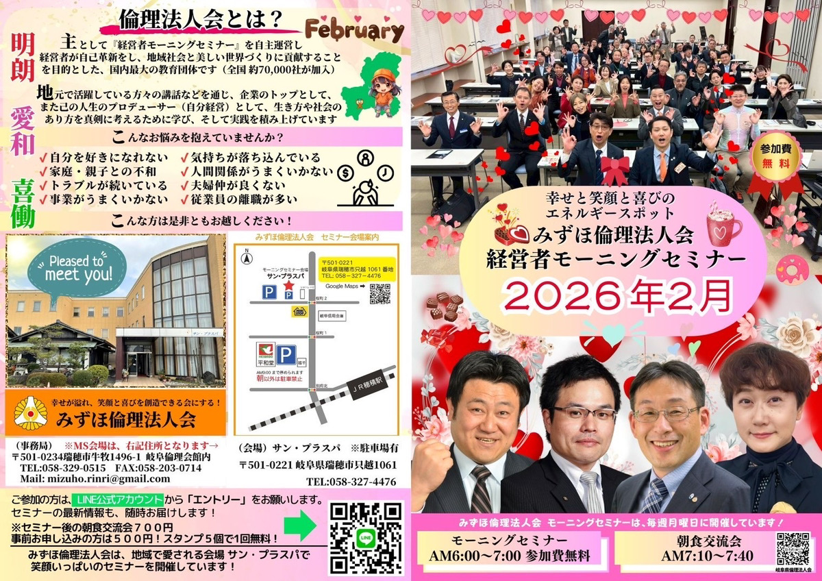 【告知】みずほ倫理法人会 経営者モーニングセミナー2月予定表