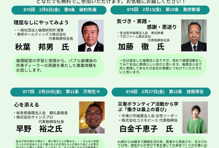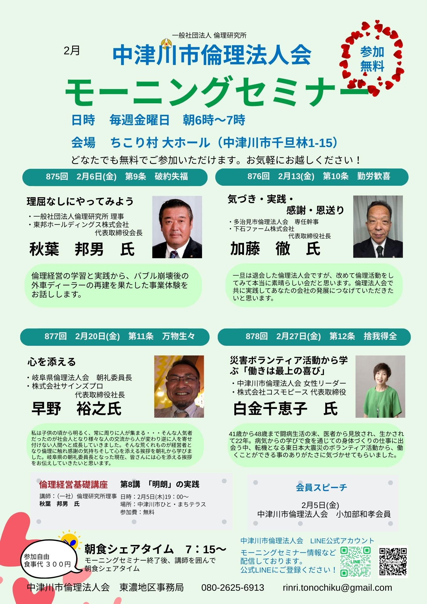 【告知】中津川市倫理法人会 経営者モーニングセミナー2月予定表