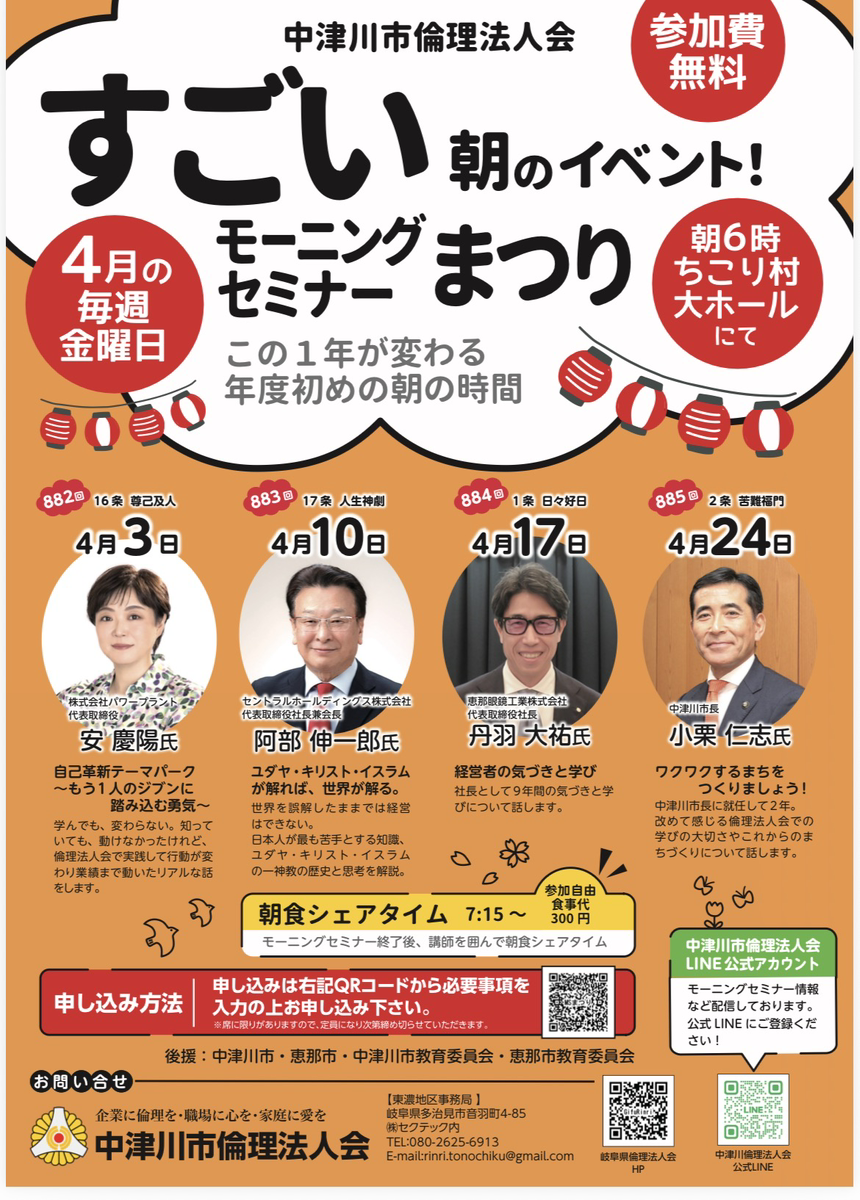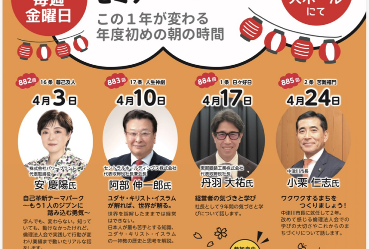 【告知】中津川市倫理法人会 経営者モーニングセミナー4月予定表
