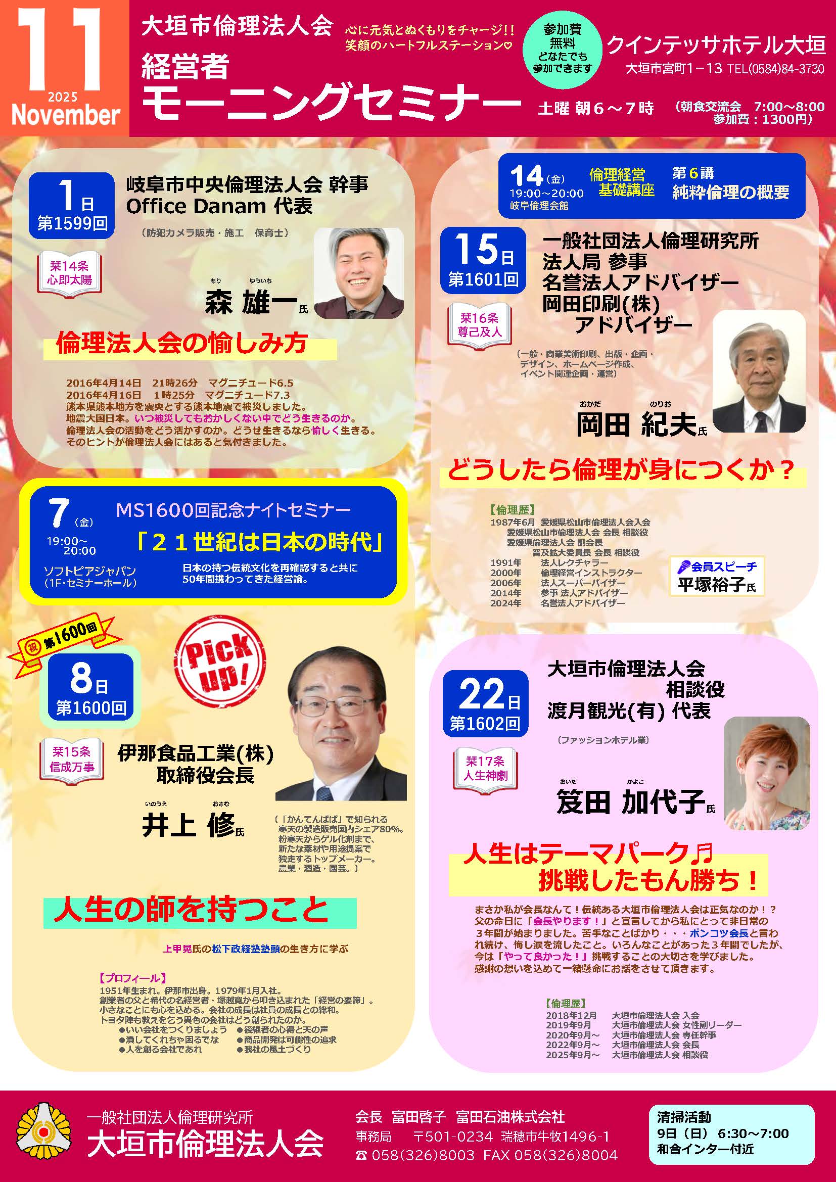 【告知】大垣市倫理法人会 経営者モーニングセミナー11月予定表