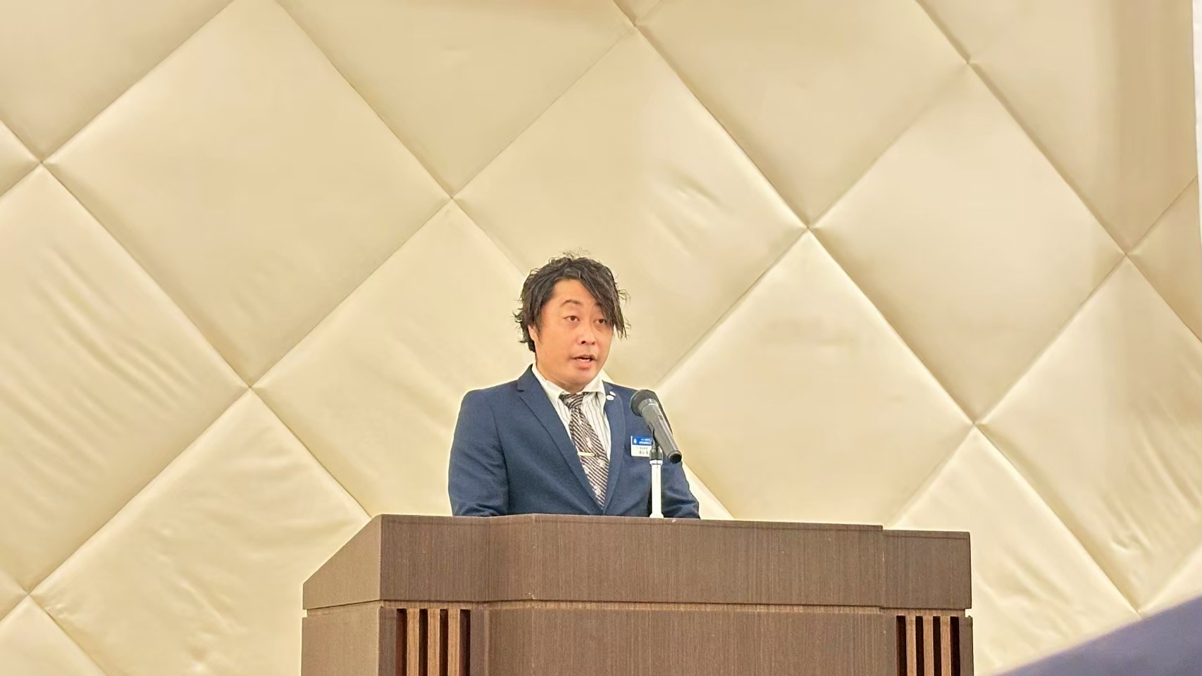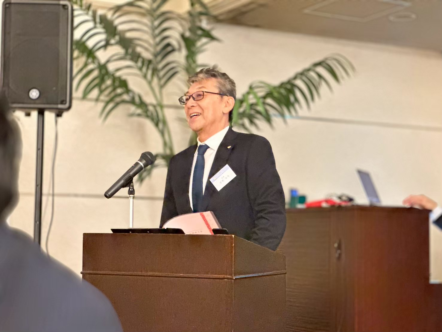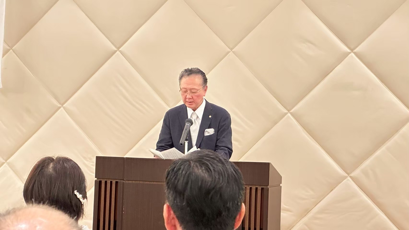 昌山慎専任幹事による経過報告では、設立実行委員会で初めて会った新美和真会長の”女房役”を務めることになった当時を「政略結婚だった」とユーモアたっぷり振り返りました。そして、今日までの紆余曲折の中で、会員数が伸び悩み心が折れそうな時も「明朗」をキーワードに新美会長を支え、絆を強めながら会員を盛り上げていった様子が語られました。