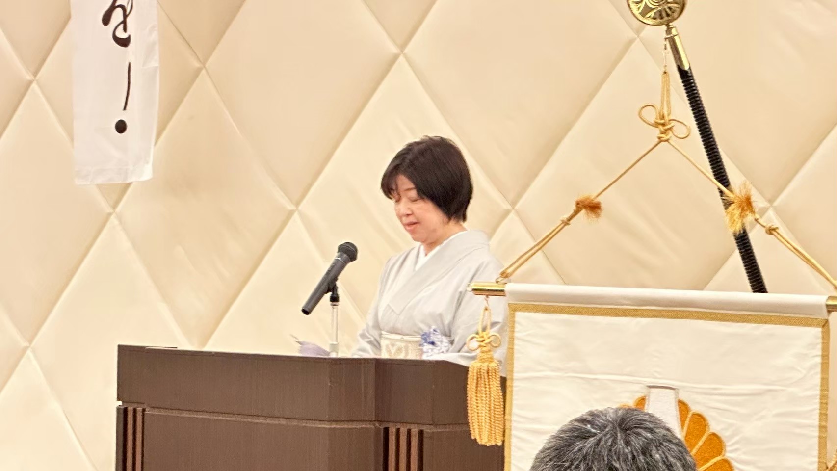 上原理恵県会長は、県内で13年ぶりとなる新単会設立の祝辞にあたり感動で声を詰まらせながら、「今日のこの日は志の種まきの日」と述べ、新しく誕生した岐阜長良倫理法人会の前途にエールを送りました。